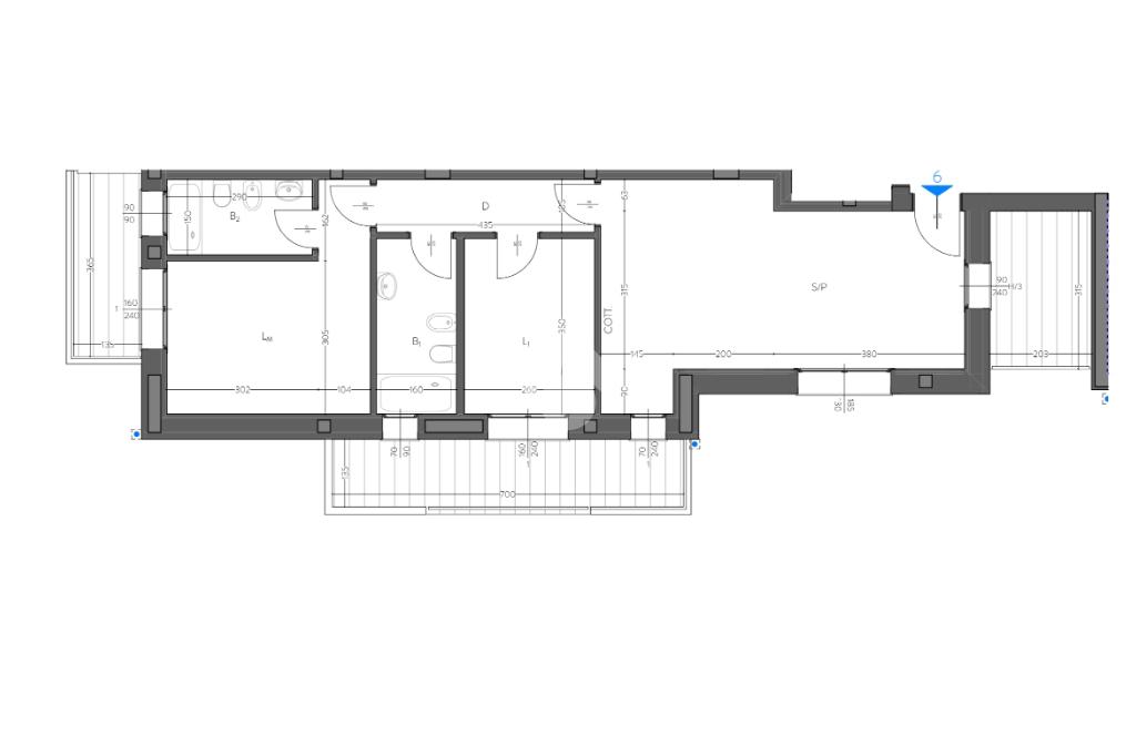 APPARTAMENTO 6: appartamento di 3 locali con zona living open space e cucina a vista, doppi servizi e due terrazzi vivibili.
