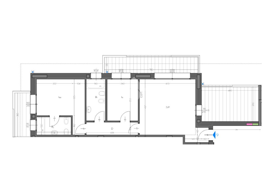 APPARTAMENTO 9: appartamento di 3 locali con zona living open space e cucina a vista, doppi servizi e due terrazzi vivibili.
